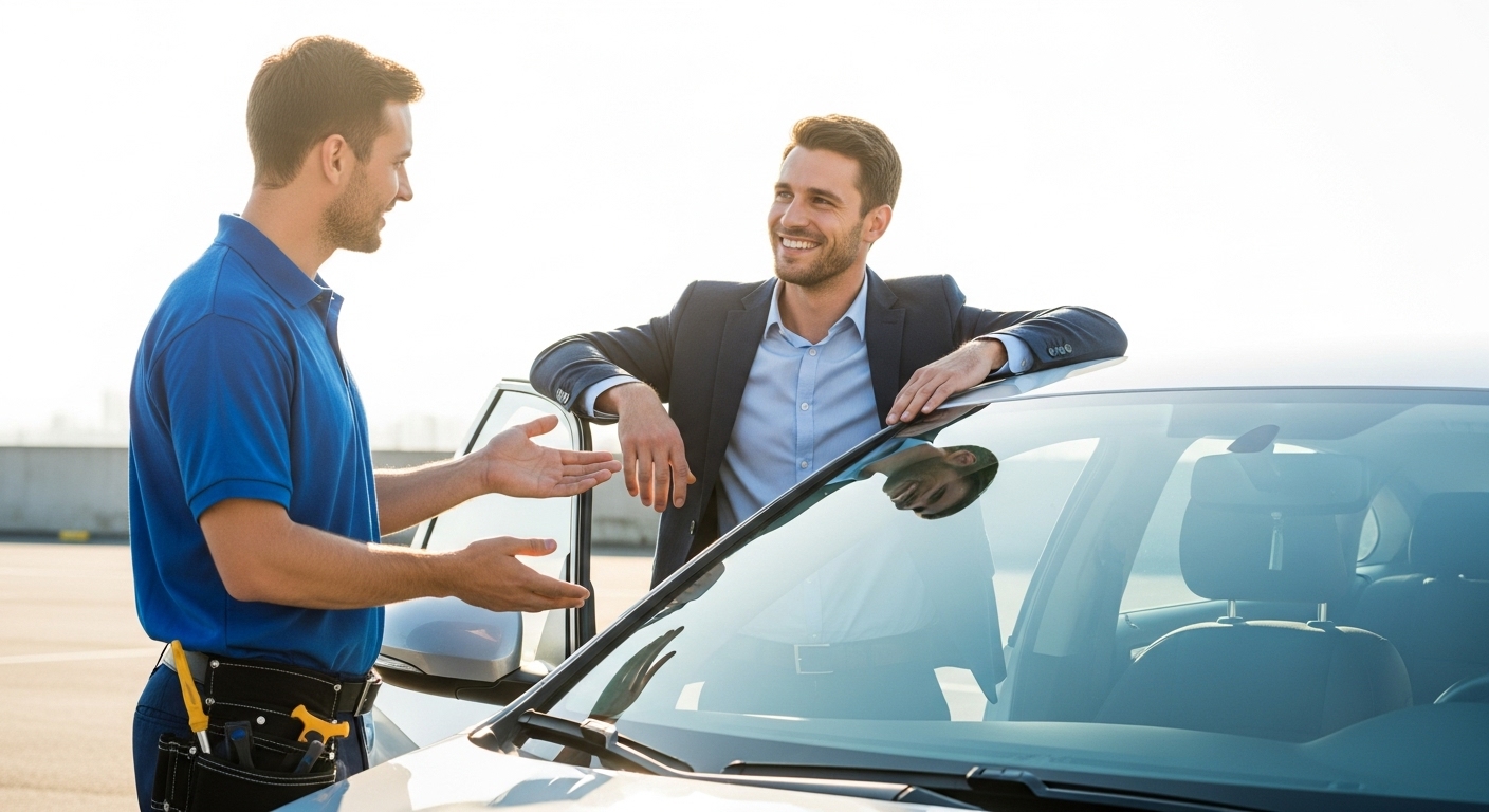 Wir sind Autoglas24. Unser mobiler Service 24/7 ist bei Glasschäden sofort zur Stelle. Wir klären alles direkt mit Ihrer Versicherung für eine entspannte Abwicklung.